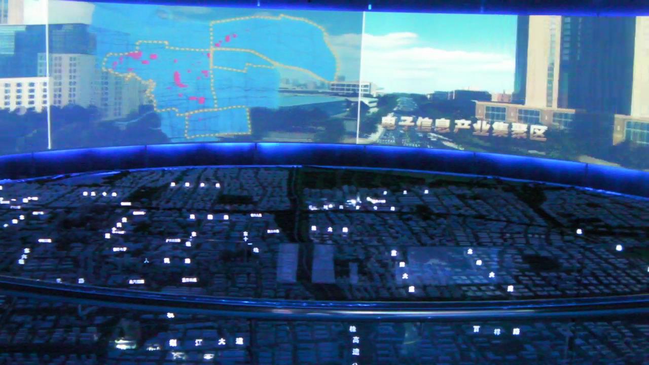 3、科技化:弧幕數(shù)字沙盤(pán)的科技含量可以說(shuō)也是很高的,弧幕投影、聲光電、融合、以及三位動(dòng)畫(huà)等的制作讓整個(gè)沙盤(pán)看上去更加的先進(jìn)有科技感。